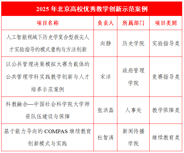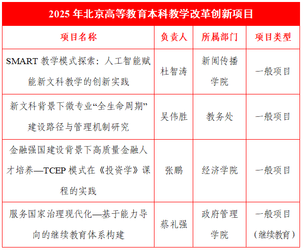 近日,北京市教育委员会公布了2025年北京高校本科教学项目建设评选结果,我校在此次评选中共推荐7类24个项目,21个项目获奖,获奖率达87.5%。涵盖本科课程建设、基本教学资源、基层教学组织、教学创新示范案例、教学改革创新项目、教学实验室和产学研深度协同育人平台建设等领域,充分展现了学校在本科教育教学领域的深厚积淀与创新活力。